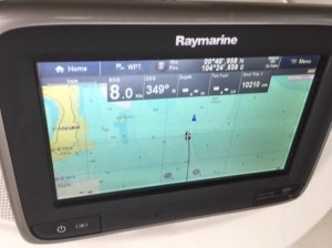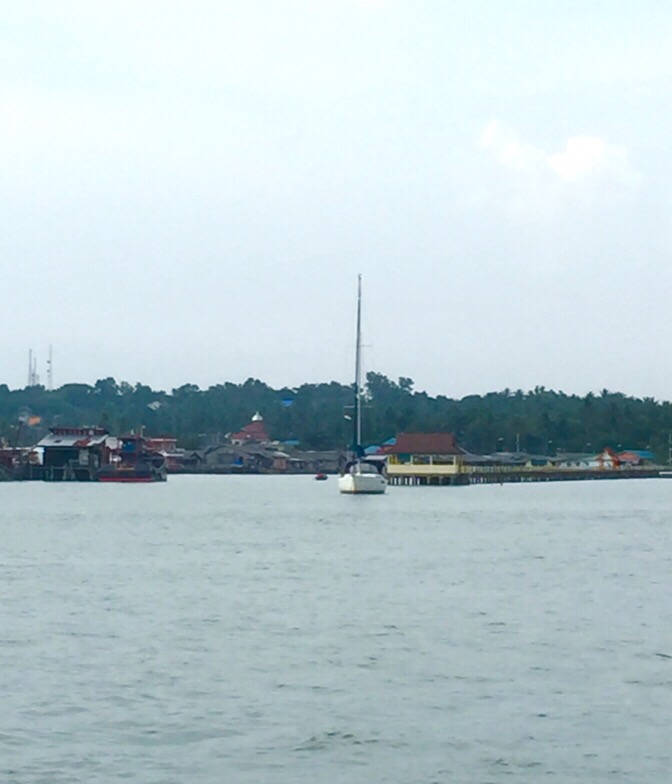 Yay! Eight knotsAs we approached Tanjung Penang the weather turned grey with a misty rain – not ideal circumstances for entering a busy little port.