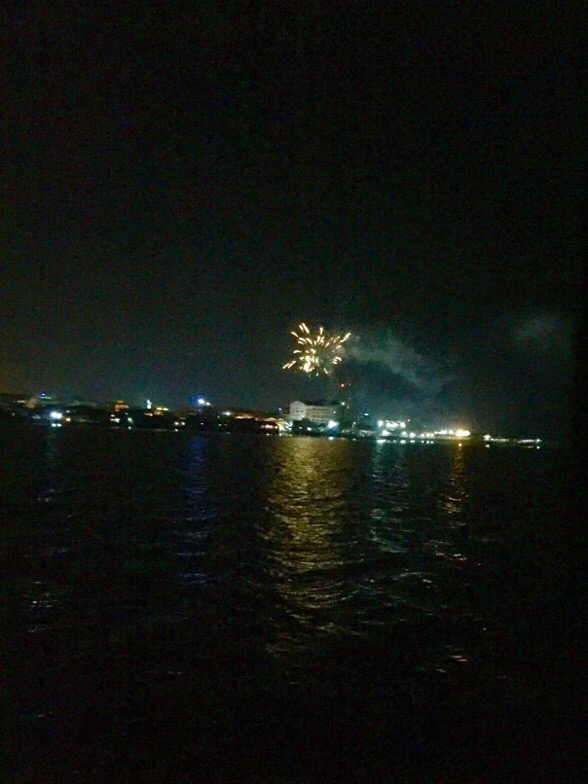 Later that night we were treated to a spectacular fireworks display opposite our anchorage. Great to always have ringside seats on such occasions!
