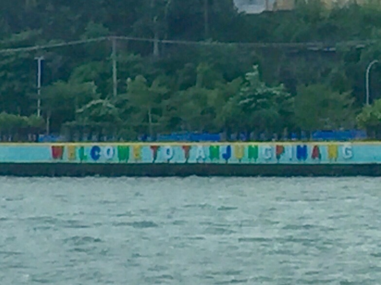 An Indonesian Navy gun boat saw us out!We had really enjoyed Tanjung Pinang having looked beyond the dirt and the accumulated waste that was washed up inbetween the buildings that jut out into the water. So it felt sad to leave.