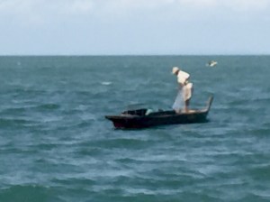 The Indonesian flag comes downWe were soon over and beetling along just outside the shipping lane on the Singapore side when Capt’n Birdseye thought he heard the blower (fan) that cools the engine make a strange noise.