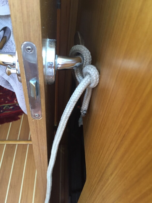 The Capt’n’s quick fix to hold up the fan until we got into the marina!Apparently we were just within the Singapore Port limit and they asked us to move so we were well clear.