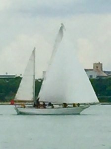 Saw this old beauty going past Singapore Straits MarinaWe managed to get to our marina berth without getting arrested or having our boat impounded and settled in quickly to this lovely spot with it’s abundance of good eateries and shops nearby selling all those goodies that are difficult to buy in Indonesia – cheese, ham, bacon and wine to name a few!