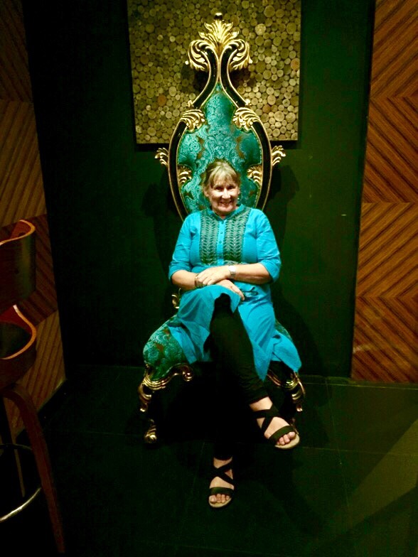 I just had to sit on this beautiful chair at our favourite Indian restaurant!It had been a truly wonderful three months in Indonesia with many memories that will last a lifetime but as we sat down to a delightful curry at dinnertime it was a real treat to eat at a restaurant with menus, tablecloths, a bottle of wine and a choice of food that didn’t involve fish, squid or shellfish!
