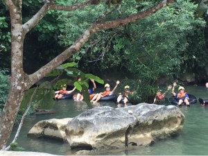 A group about to go tubing in a cave at Vang Vieng. Such fun and because we were just a group of two our guide took us deeper into the bowels of the mountain.