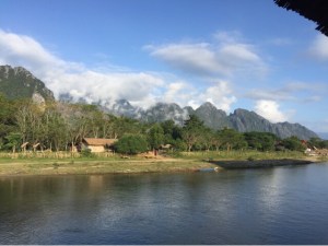 We spent a few days exploring Vientiane before taking a mini bus to beautiful Vang Vieng where we stayed right on the river at the Elephant Crossing Hotel which had spectacular views over the mountains.