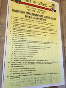 We were intrigued to see the stipulations of the “Children’s right to free and compulsory education act 2009” on the wall. It is shocking that before this time there were thousands of children in India who didn’t get to attend school.
