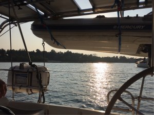 Just as we were going to bed we saw a boat lit up like Christmas tree that was hooting like it was going out of fashion. We had literally switched everything off – lights, (except anchor lights) radio etc and as the vessel was quite a long way off and we were happily tucked into an anchorage near the beach we just decided to go to bed and ignore it – it was after 11 pm after all. The next morning it occurred to us that it could have been coastguard but at the time we just didn’t think to put radio on. We had heard that other boats had been called up late at night by the coastguard but I don’t think they can expect a response when a boat is legitimately anchored at that time of night.