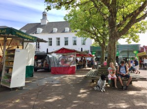 A few steps away from our daughter’s front door is the market square where every Wednesday beautiful fresh flowers, fruit and vegetables, fish, meat, clothes and an assortment of other goods are sold.