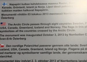 Large signboards explained that the Arctic Circle is the southernmost latitude where the midnight sun can be seen at the summer solstice. Further it explains the arbitrary and shifting nature of the line which drifts 15m or so north each year in a long, cyclical wave over a period of 40,000 years with variance of over 180km. Juoksengi is really only a temporary custodian of the slowly passing Arctic Circle line.