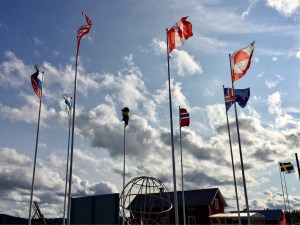 The focal point of the stop was a large metal globe at the centre of a circle of flags, each representing the eight countries that the Arctic Circle line runs through (Sweden, Finland, Russia, USA, Canada, Greenland, Iceland and Norway).