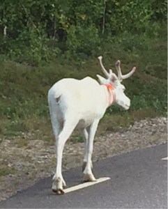On the road again, heading for our next destination Sirkka, the following day, we were once more driving in increasingly remote and lonely conditions. Again, there were very few signs of life except for LOTS of deer including one beautiful and rare pure white creature.