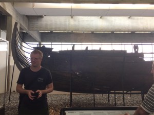 The first of the five excavated vessels we saw was a sea going cargo boat made out of pine but repaired with oak and Linden wood that carried a crew of around seven. A reconstruction of this boat took 20,000 man hours (i.e. one man seven years of work) to complete.