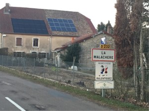 As evening approached we decided to stop for the night in a rest stop off the road near the town of La Malachère. As the road wasn’t very busy it was fine just for one night. There were still mounds of dirty snow around in the car park and at the side of the road and it was pretty chilly that night. Fortunately we have an excellent heater and a timer that ensures our moving home was lovely and warm when woke up in the next morning.