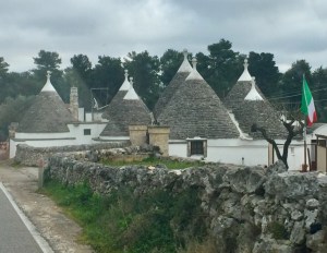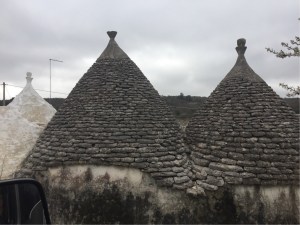 What we were seeing were Trulli – typical ancient Apulian small round houses of stone with a conical roof that were originally constructed as temporary field shelters and storehouses by farmers but more recently used as permanent dwellings.