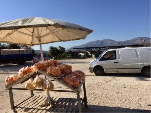 The short drive was very pleasant which was just as well because when we arrived at the site we discovered that entry was by appointment only. A herd of sheep provided us with some entertainment outside the gates and on the way home we met geese on the road and picked up a massive bag of the sweetest ever oranges for three Euros.