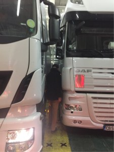 Truck engines were starting everywhere around and I was terrified they’d start rolling out before we could reach the safety of our van which was nowhere to be seen. It was like a terrible nightmare but I was wide awake – an anxious little ant dwarfed by larger than life monster trucks.