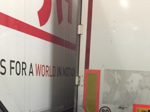There were trucks everywhere and somewhere amongst them was our little campervan