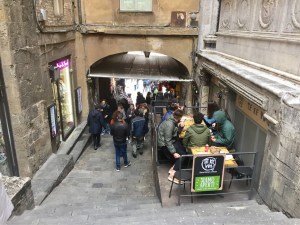 Right in front of the station was a shopping mall and to enter the city’s historic centre from there we took the escalators in the mall which led us up to even more escalators which finally deposited us close to the ancient city gate.
