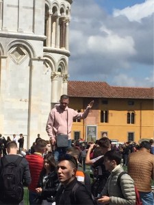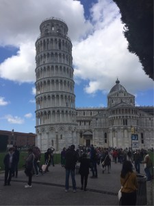 Pisa was of course interesting but rather predictable. We enjoyed watching people set up their Instagram shots of the Leaning Tower and were amazed at their ingenuity. The tower was variously shot to appear balanced on people’s heads or hands, or being pushed over/leant on or kicked like a football. It was intriguing to see how much trouble people went to to get that special shot.