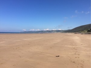 We had a wonderful walk along the beach which is three miles (4.8 km) long, enjoying the beautiful, almost empty, stretch of sand and the small waves rolling in from the Atlantic Ocean.