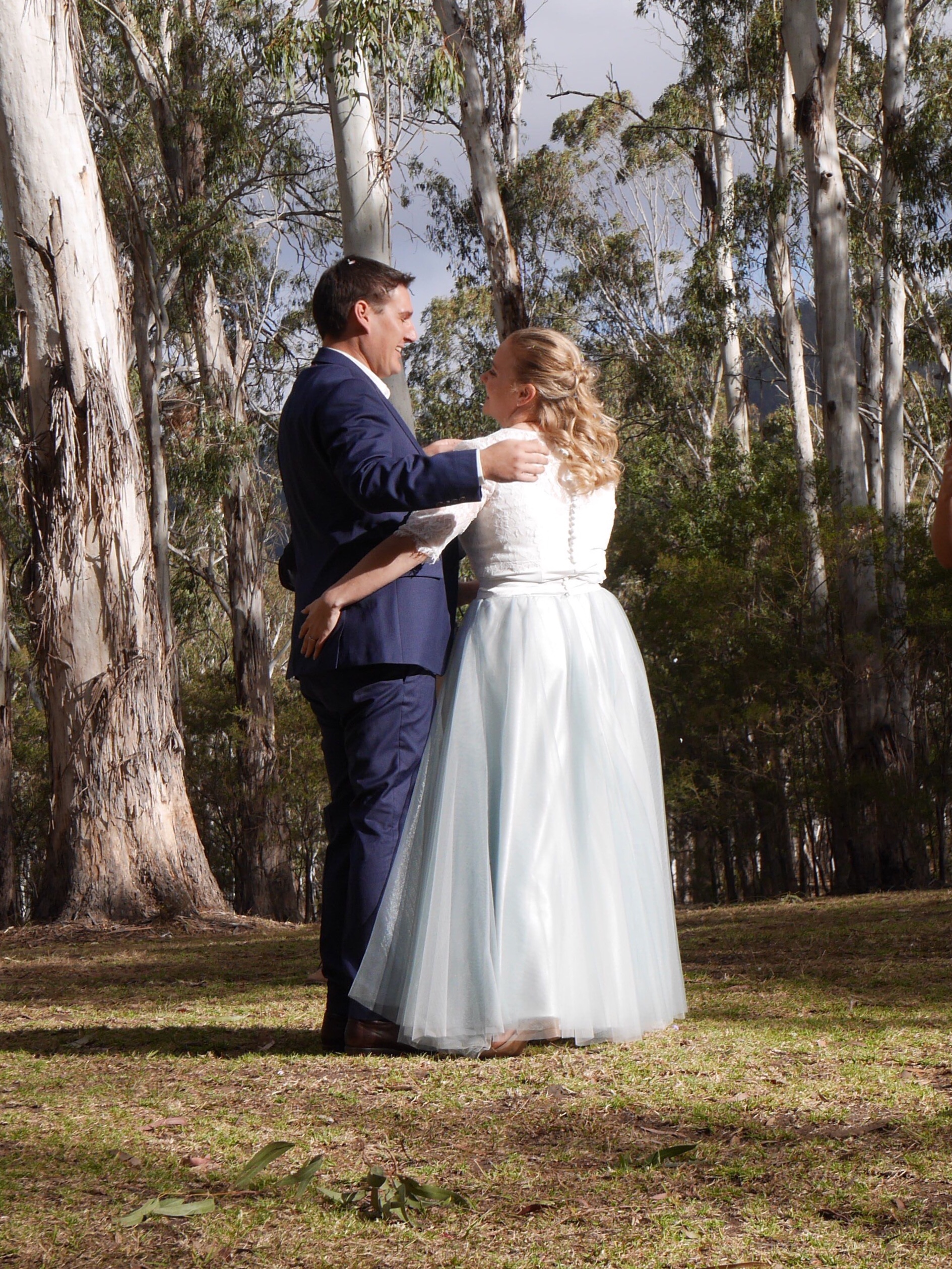 The wedding itself which took place on the banks of a creek with the grand dogs in attendance, was relaxed, intimate and memorable. The bride was beautiful, the bridegroom was handsome and the dogs clean and glossy and very smart in their tuxedos.