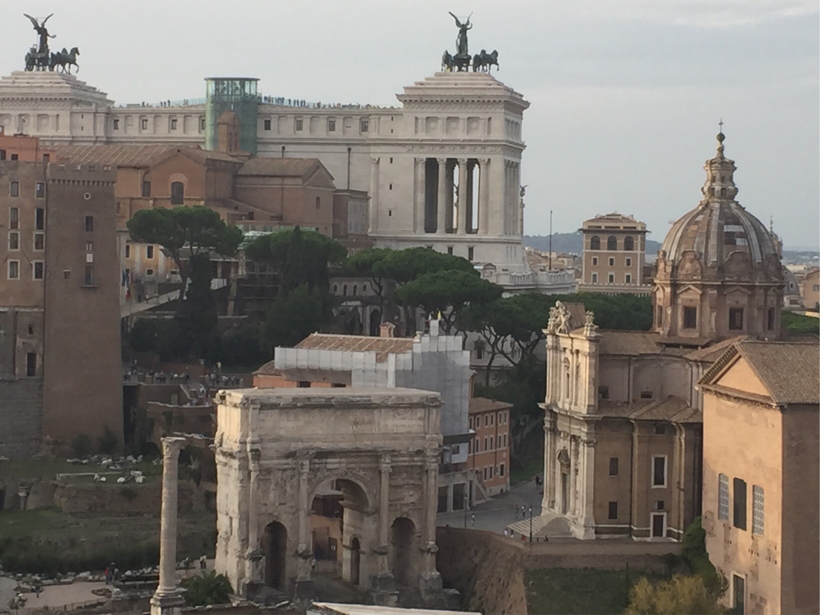 Once through the gardens we were over on the other side of the Palatine Hill where there were stunning views from a series of terraces of the labyrinthine ruins of the Roman Forum, the Capitoline Hill and beyond.
