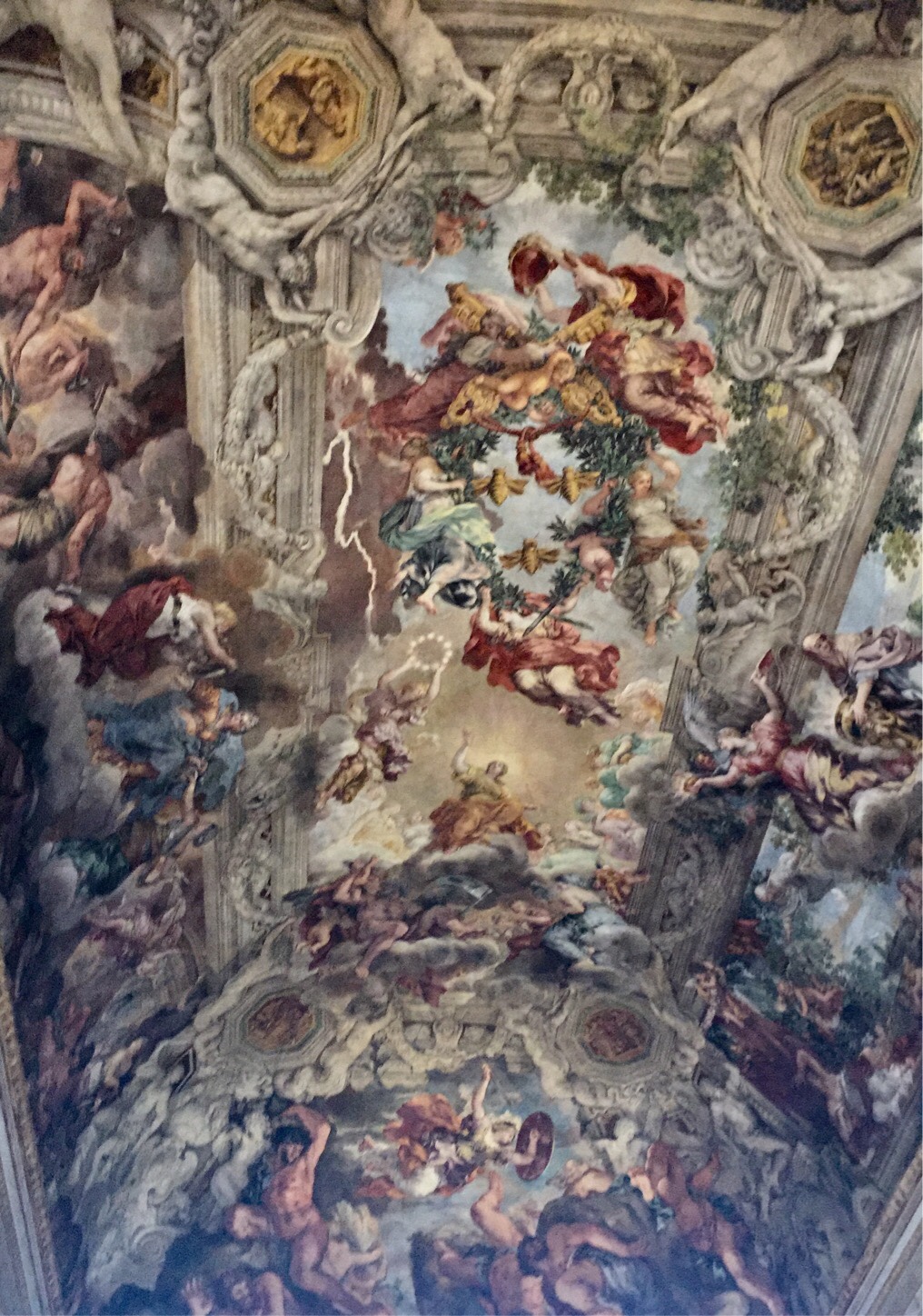Quite apart from the many magnificent pieces of art in the museum, the building itself was a piece of art too. For example the salon ceiling contains a exquisite fresco called the Allegory of Divine Providence and Barberini Power by Pietro da Cortona (painted between 1632 and 1639). This vast masterpiece, glorifying the Barberini family, apparently became highly influential in guiding decoration for later palatial and church ceilings.