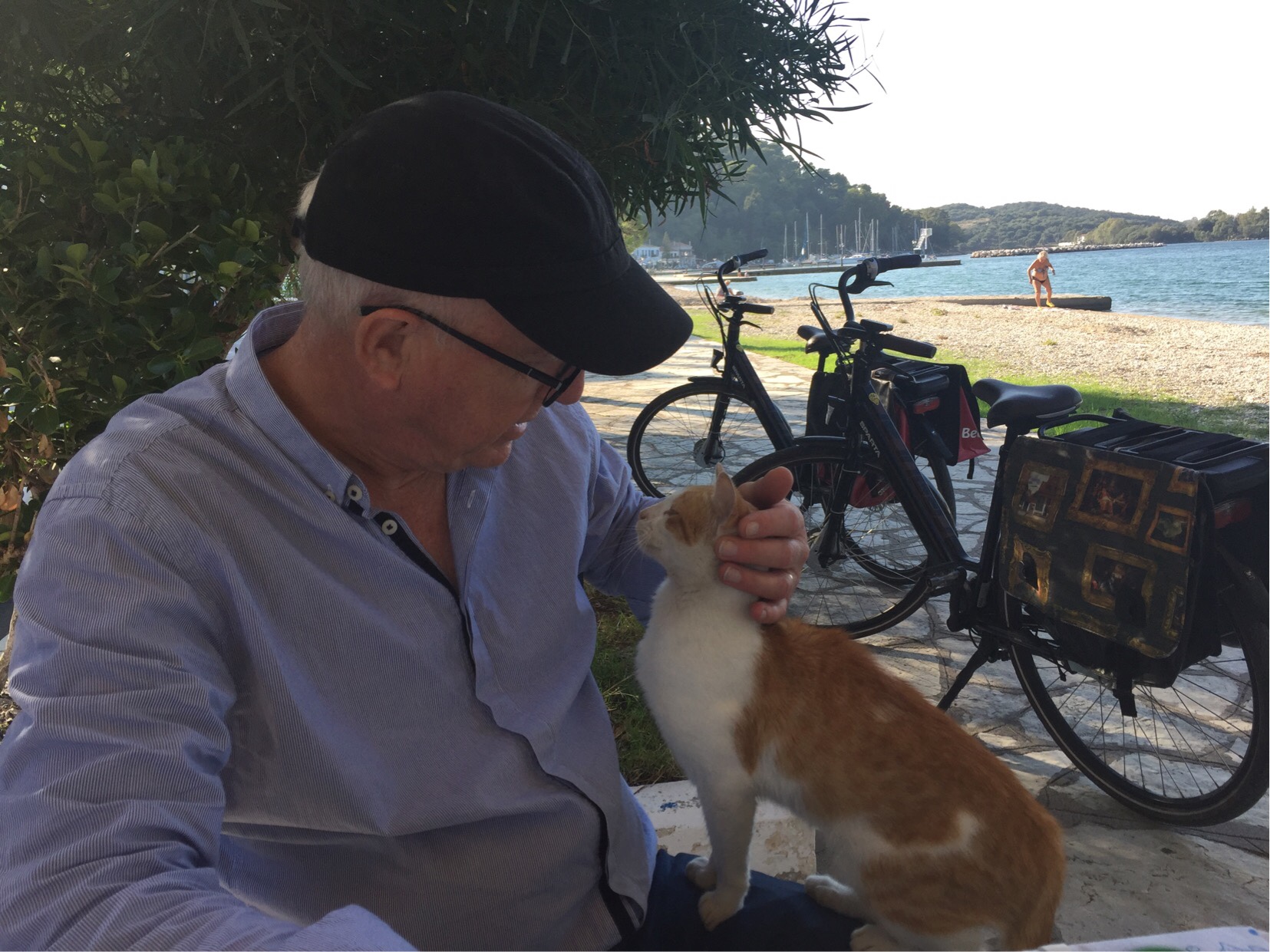 We cycled back and had a cold beer in a pretty little beachside bar. On the way to the van afterwards we saw about ten cats on one of the doorsteps all waiting for their evening meal.