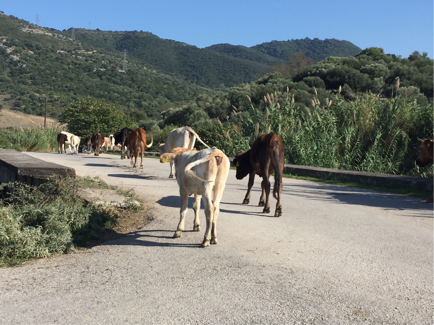 We kept going and then turned inland down a narrow farm track where we passed a number of small holdings, heard the clanking of goat bells and met a herd of cows strolling calmly along the track.