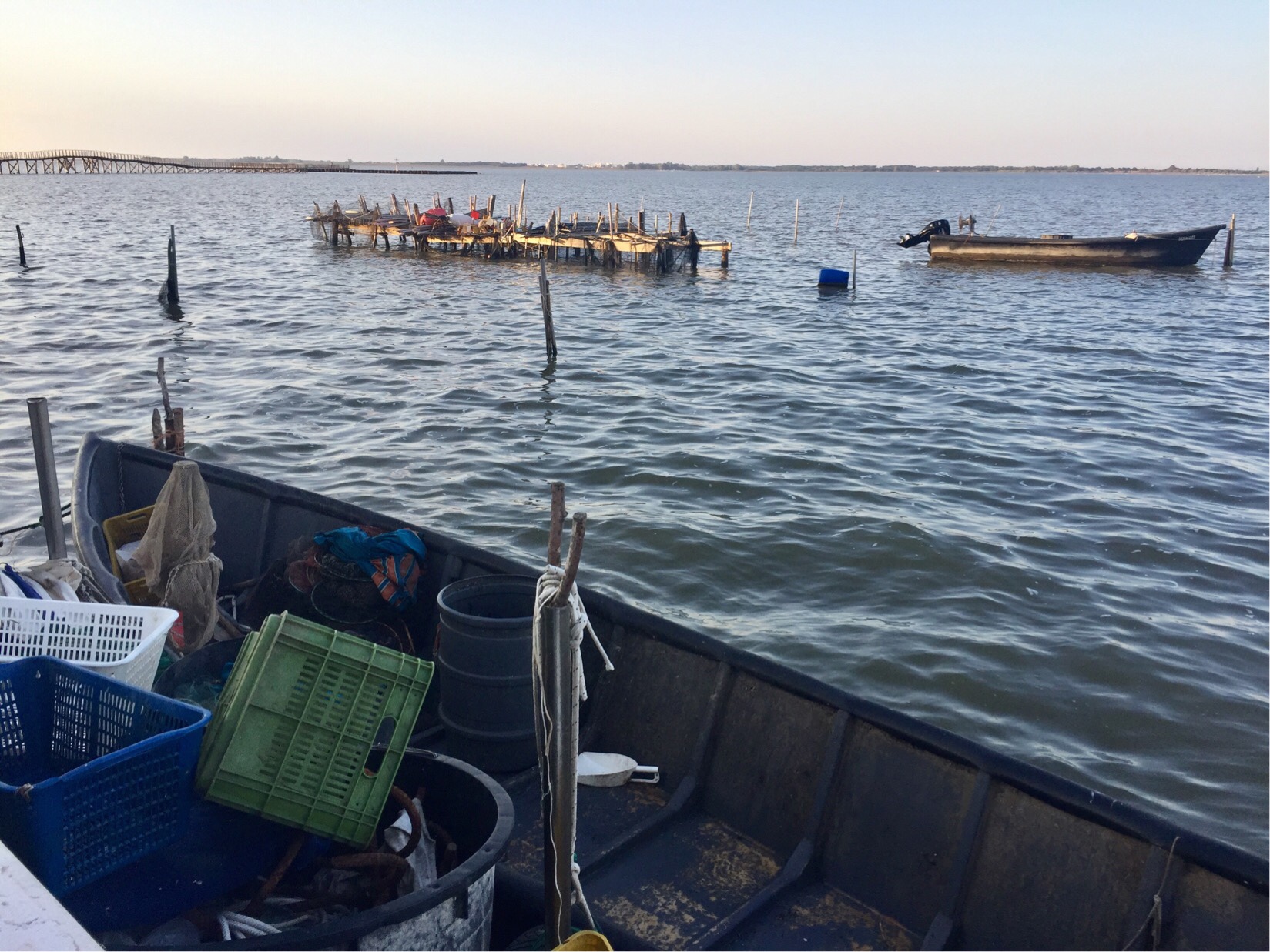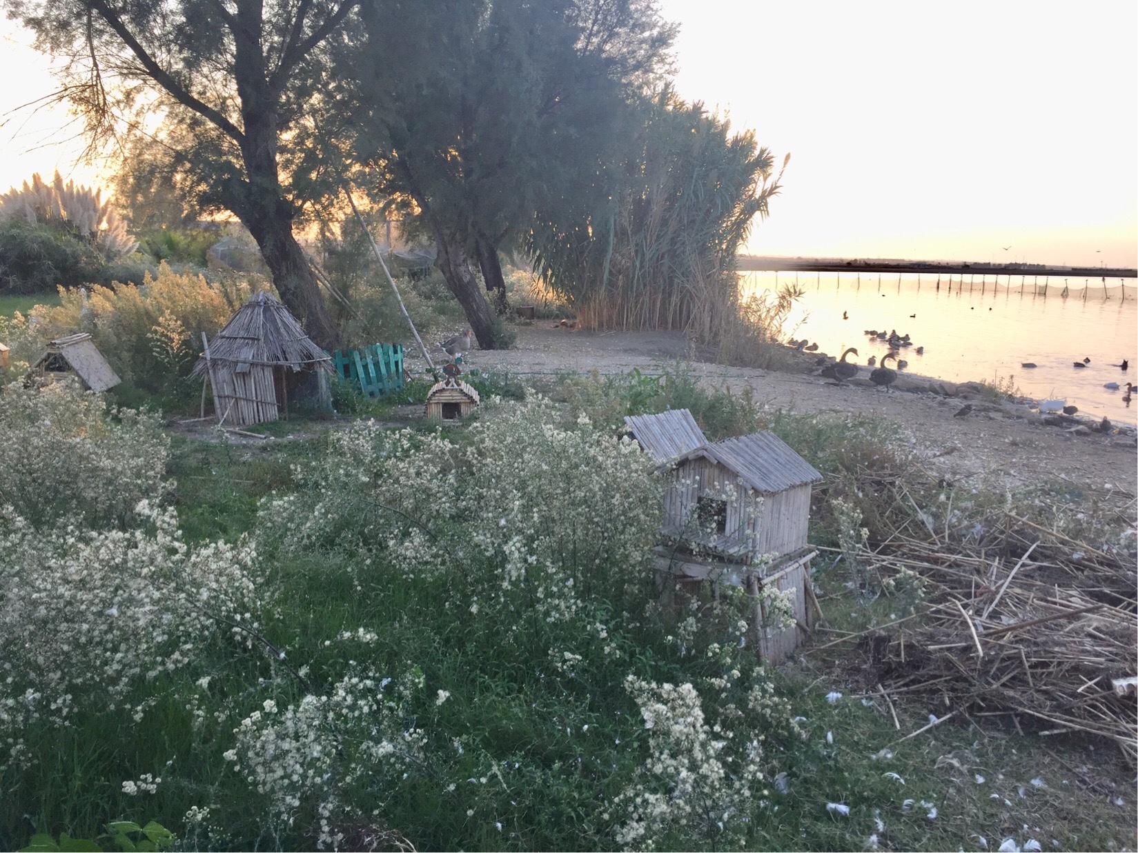 A glorious evening stroll along the edge of the lake brought back memories of our time in SE Asia as there were various fish traps and fish farms dotted along the shoreline – made from what looked like random sticks, fishing net and various other materials.