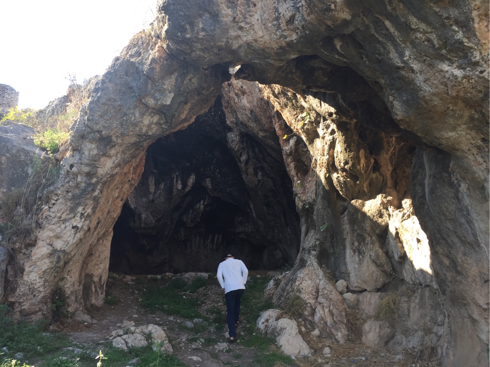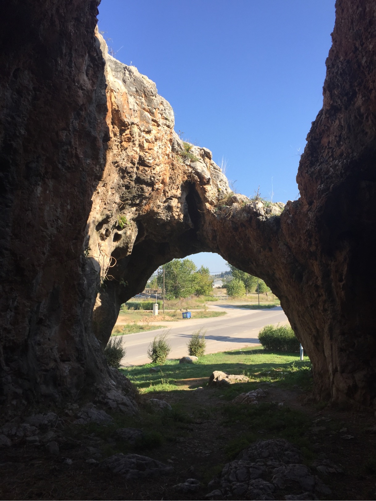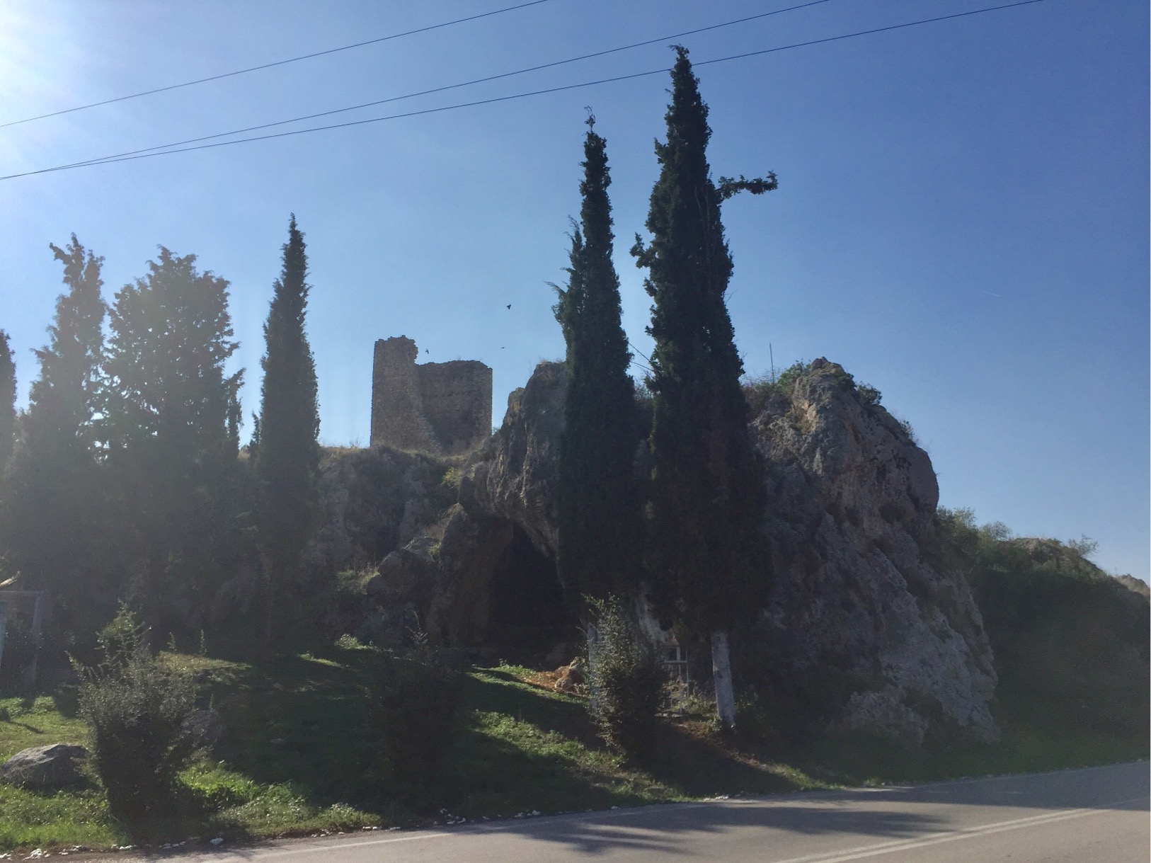 We stopped for lunch in Aliartos , a small farming community, opposite a cave with what turned out to be a Medieval tower perched above it. At the back of the cave we could see the start of a “secret” passage which looked like it connected to the tower – maybe an escape route if the tower was attacked?