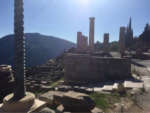 We headed for the ancient archeological site of Delphi, the Greek religious sanctuary sacred to the God Apollo (the god of light, knowledge and harmony), on Mt. Parnassus near the Gulf of Corinth.