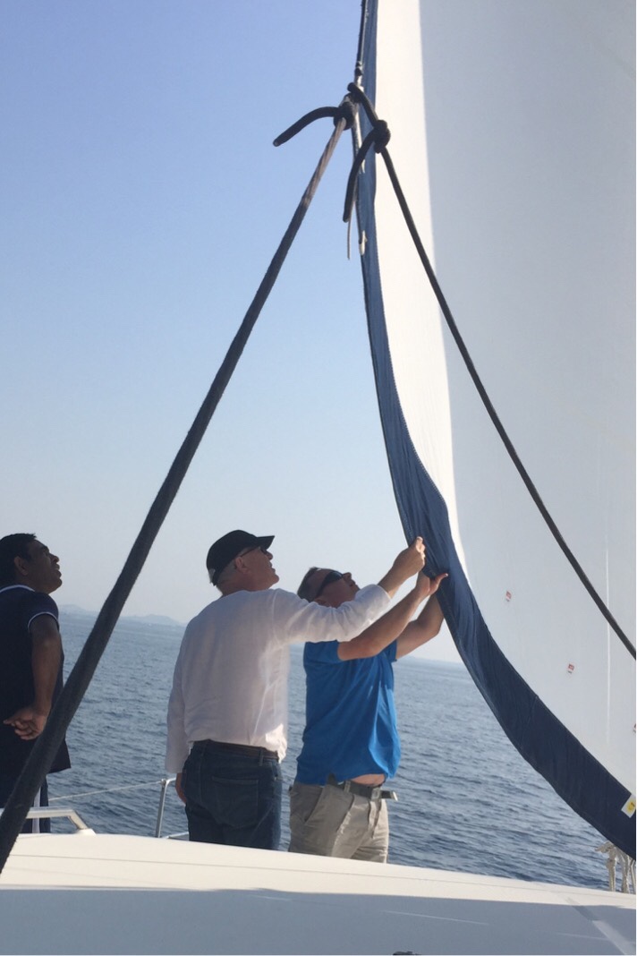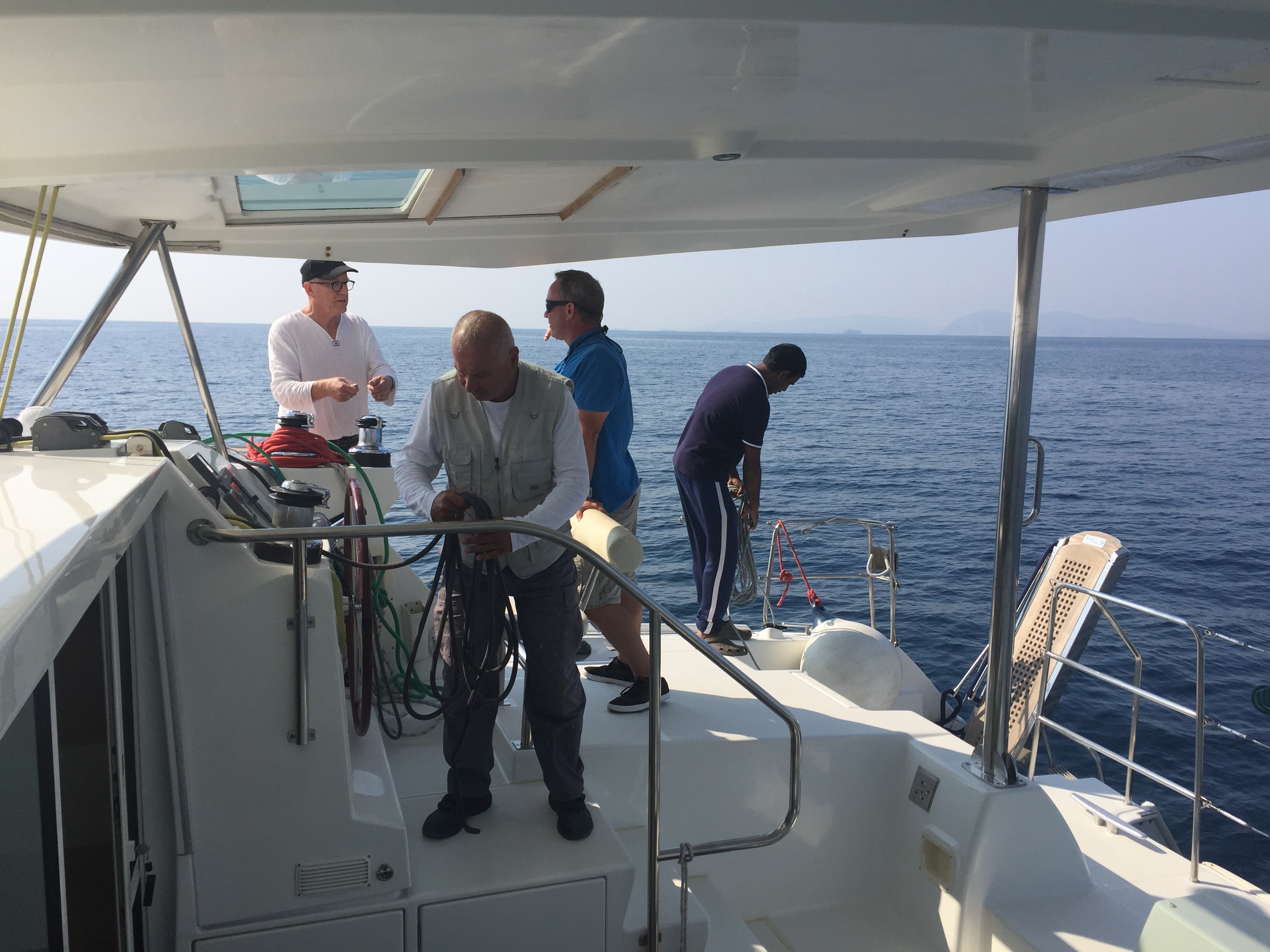 There were only five of us who went out as Nicos and Manos, Sunday’s owners, had other things on. So Sayeed, who has been employed to care for Sunday for the past ten years, Philippos, a hired skipper, William Walsh, the surveyor, and the two of us headed out of the marina.