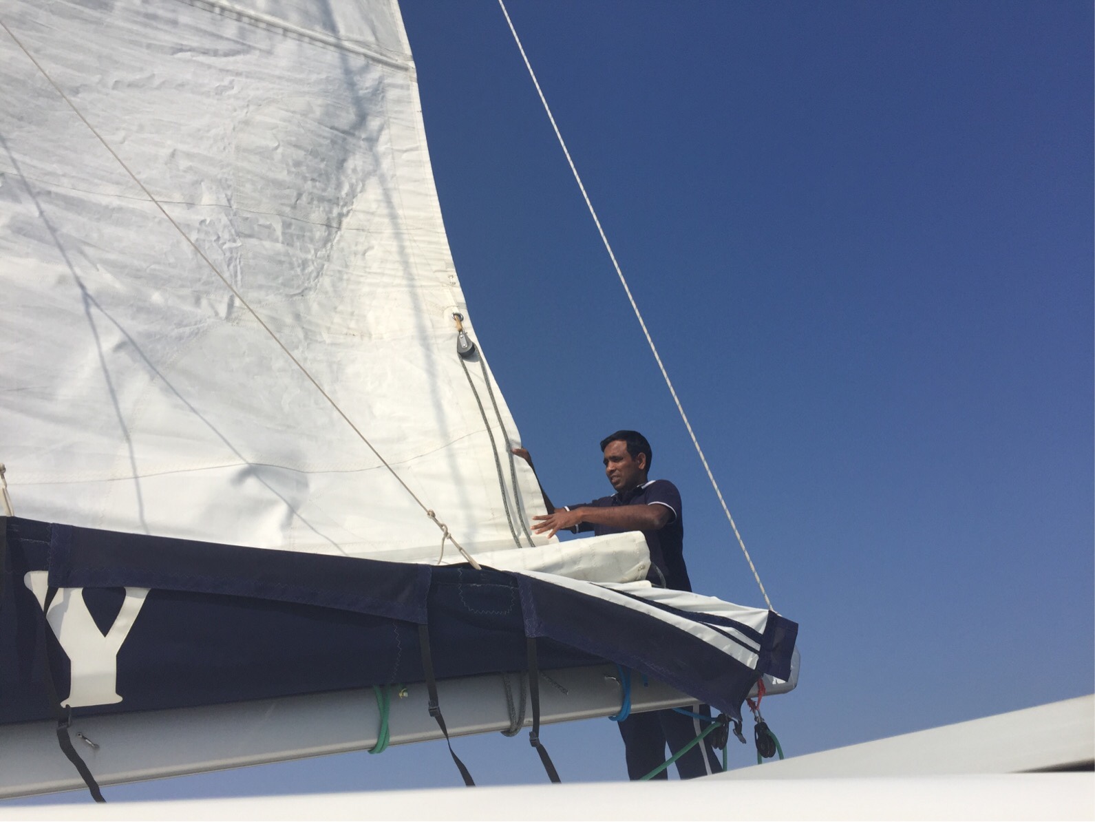 William Walsh tested, prodded, poked and gave everything a thorough going over. When we put the sails up we were very impressed with their condition – they were spotlessly clean, soft and easy to handle and with not one spot of wear or anything else.