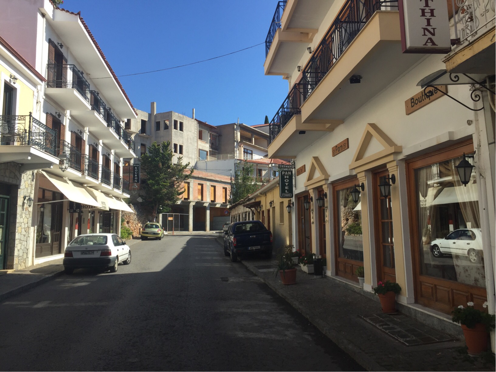 Winding back down the hairpin bends was a little less fraught than on the way up which was a good thing. Before too long we were down on the floor of the deep Amfissa valley, passing through hundreds upon hundreds of beautiful olive trees.