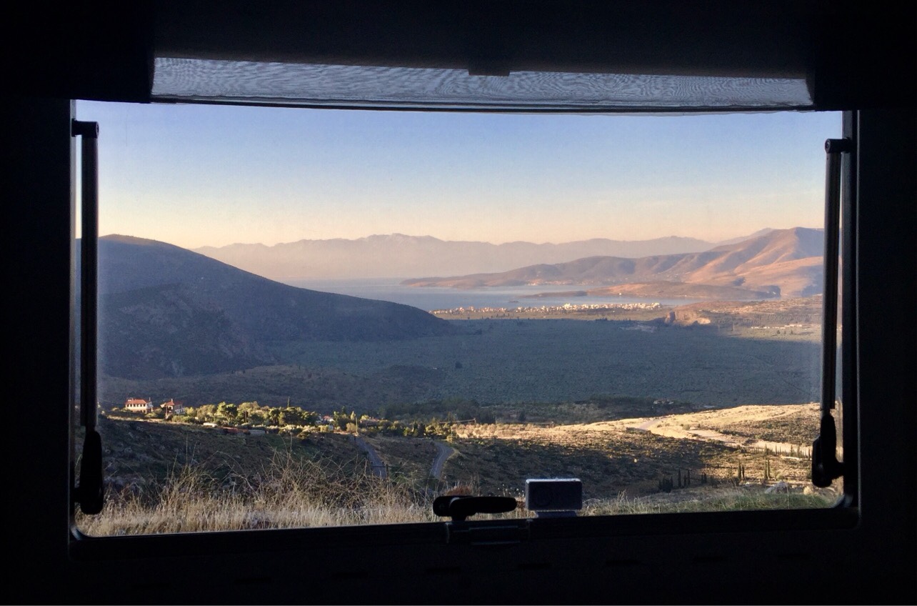 What a glorious sight to wake up to! We were free camping in Delphi – once regarded as the centre of the world and you can see why! (For more on our Delphi adventure see https://saltytalesfrombalihai.com/2019/11/24/the-inexplicable-mystique-of-delphi/)