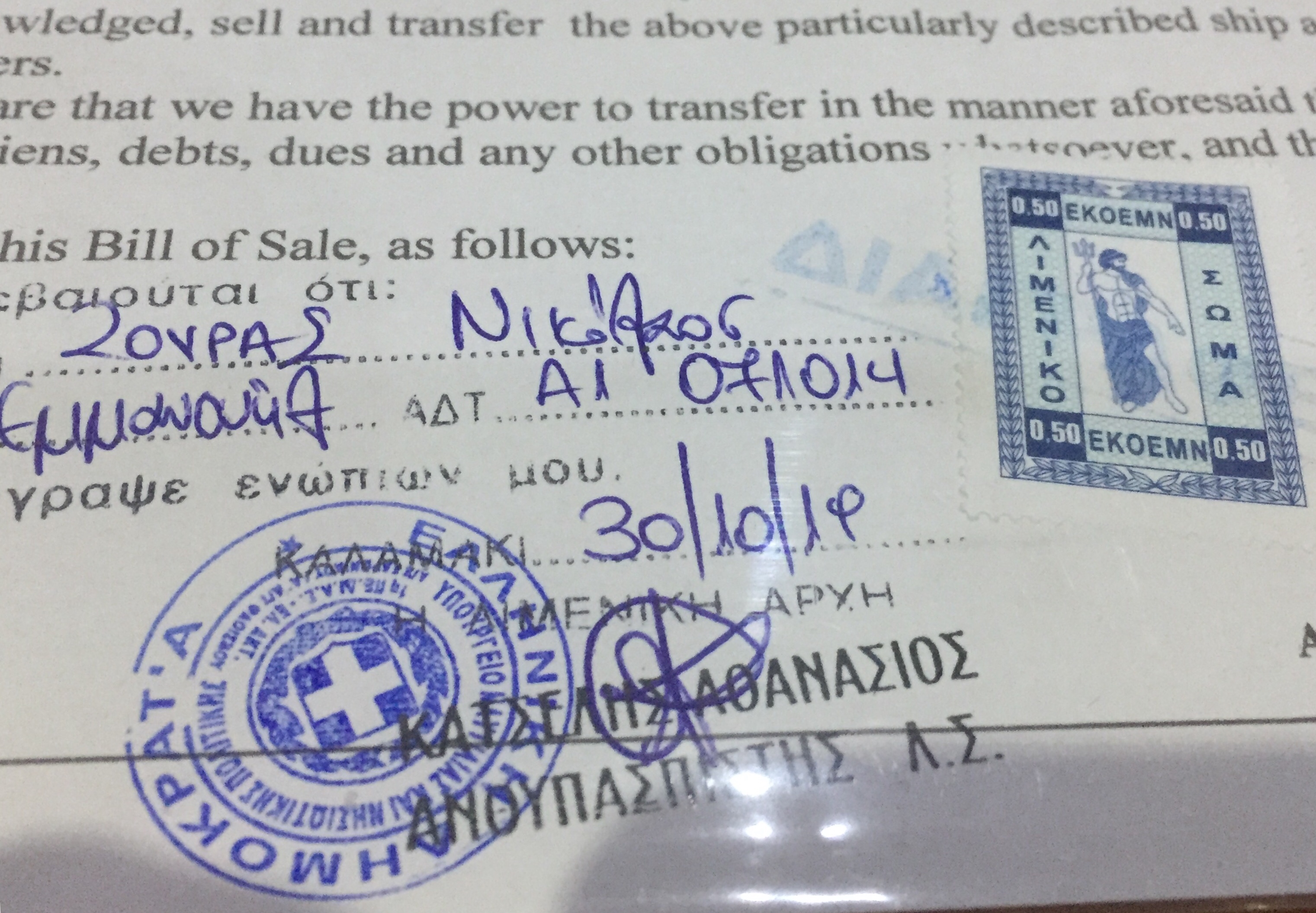 So, satisfied that we had a good boat that had not had any major mishaps or accidents, the following day (which happened to be a Wednesday) we went to the Port Police to have the bill of sale ratified (which involved paying stamp duty of one Euro for each of the copies and lots of rubber stamps.)
