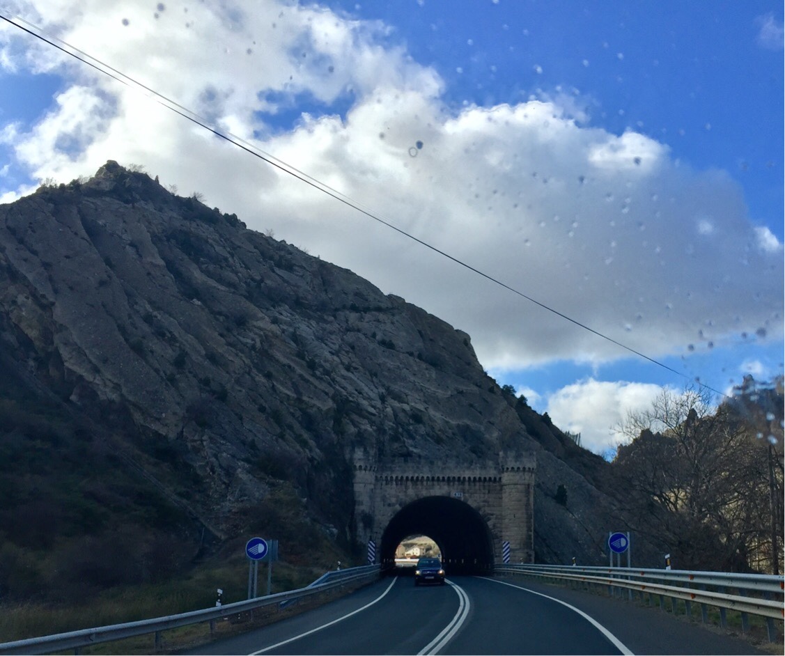 Up through a towering escarpment, driving between forbidding craggy cliffs and in dark tunnels drilled through immovable rock formations – the stark beauty of this road took our breath away.