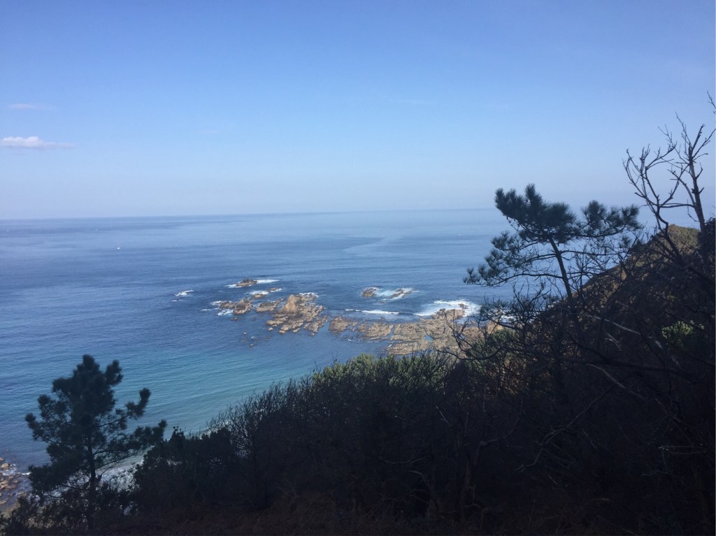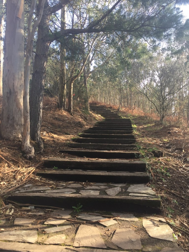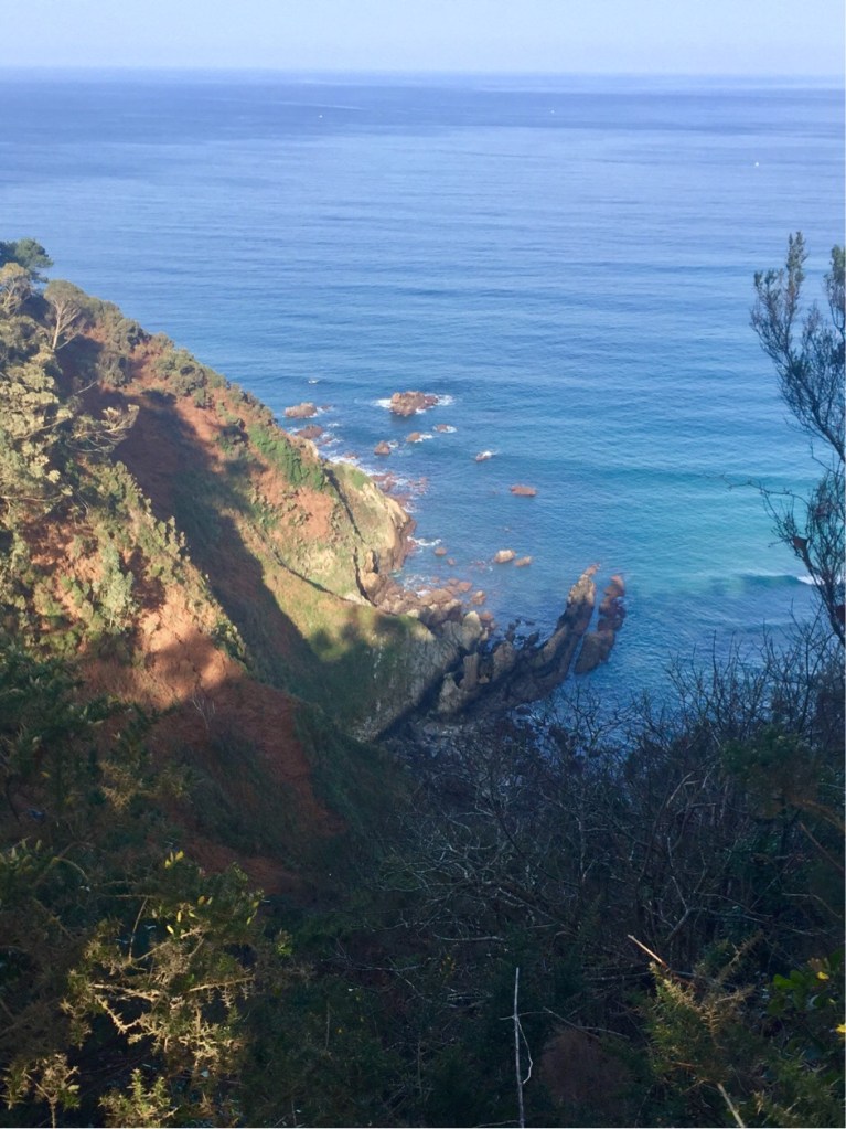 First up a small slope and a beautiful glimpse of the sparkling Bay of Biscay. Then a long climb up a flight of steep steps which led to another flight of shallower stairs.