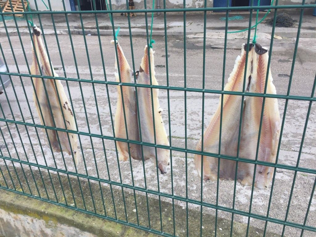 As we walked passed we noticed fish split open and hung out to dry on the fence. In the little bay next door hundreds of seagulls and other seabirds waited on the sand poised for any opportunity to grab the parts of fish that the fisherman threw away.