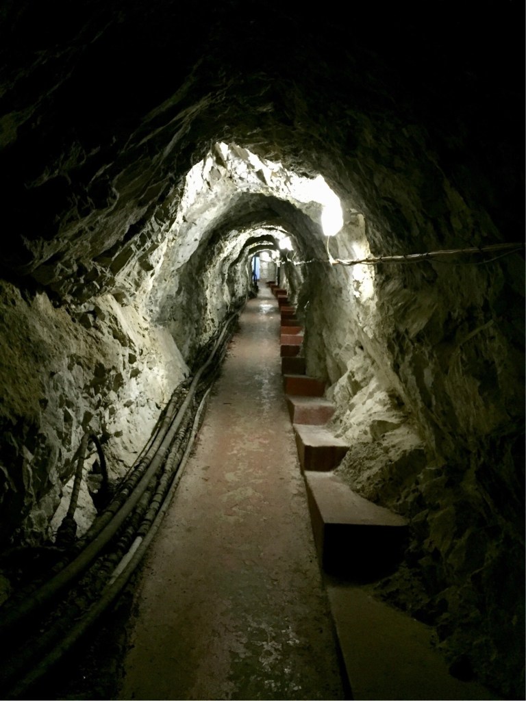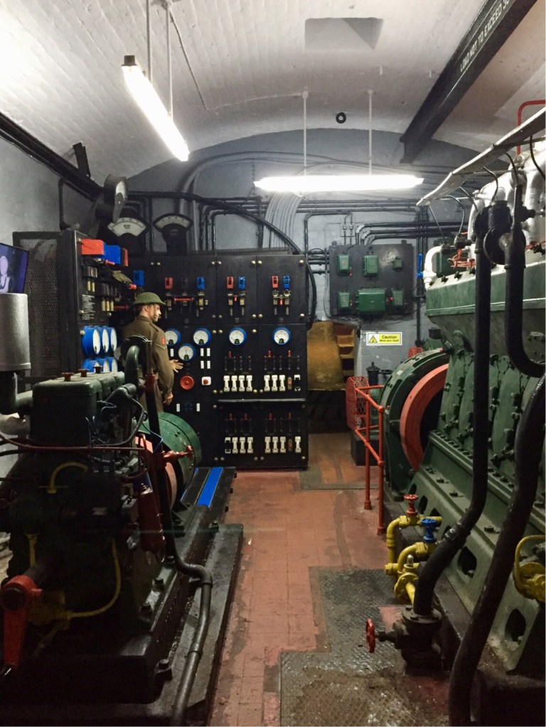 There was a little museum in the underground area where the gun and engine rooms and shell storage were located. An atmospheric tunnel carved out of the rock led from the engine room to the gun.