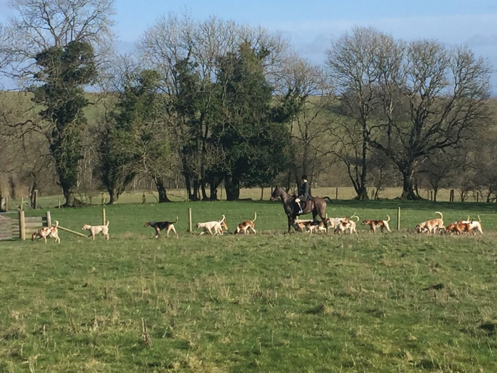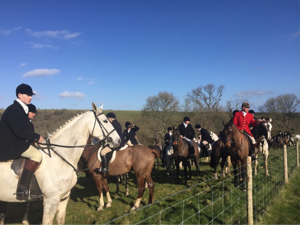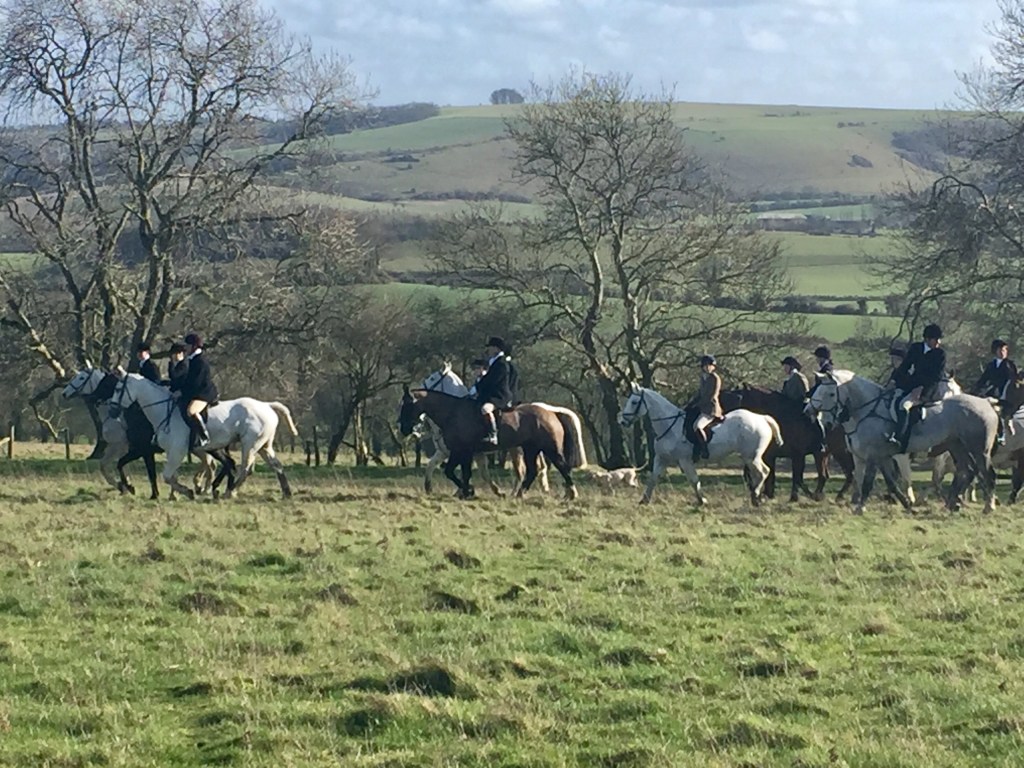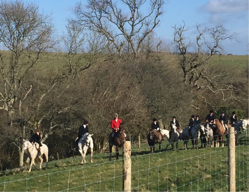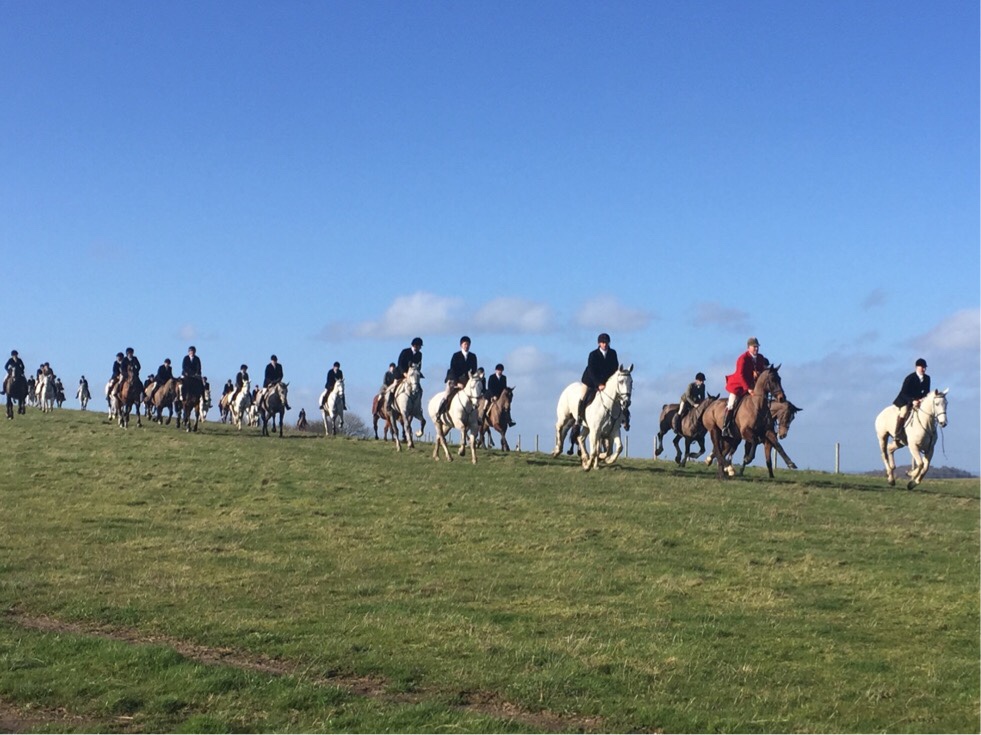 Suddenly over the crest of a hill a large gang of dogs followed by a massive throng of horses and riders appeared – heading straight for us. It was the local hunt!