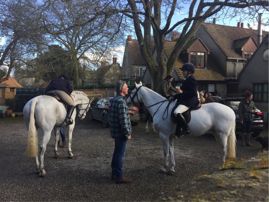 The humans were also having a ball and were of very different shapes and sizes – from the tall and regal looking red coated master of the hunt to the black hacking jacketed, red cheeked and beplaited little girls on their Thelwell ponies and the hefty, strong and tweedy farm labourers on their sturdy steeds – and everything between.