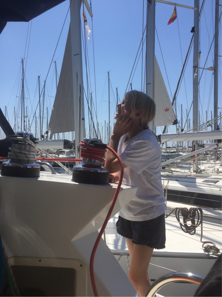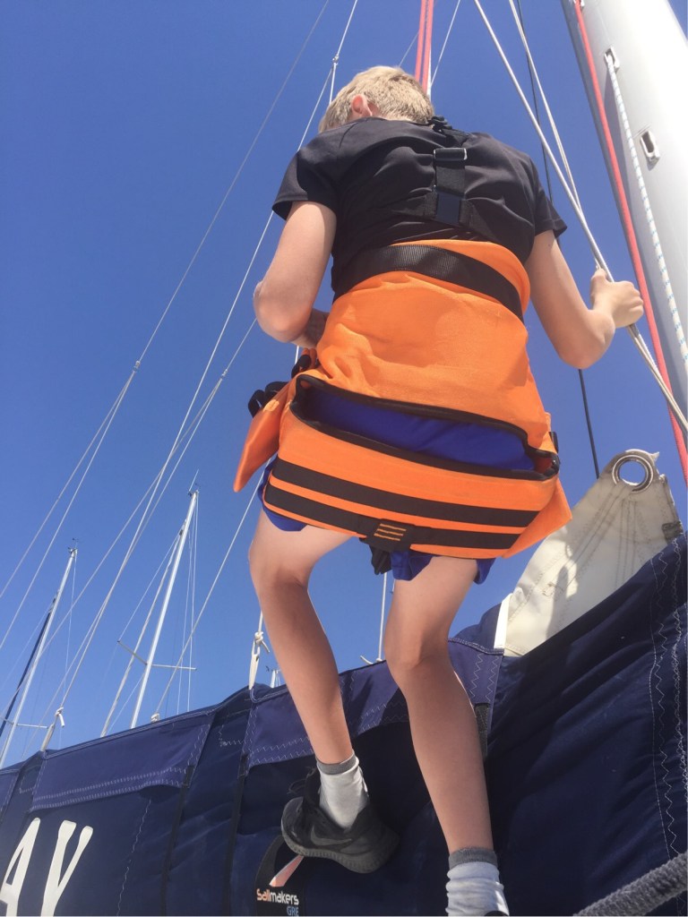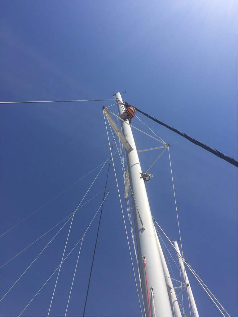 One day early on in “lockdown”, we sent 13 year-old Luca up the mast to investigate a faulty steaming light. He was amazingly brave and miraculously seemed to enjoy be hoisted up in the bosun’s chair. This was a great relief to Jonathan and I as we both hate heights!