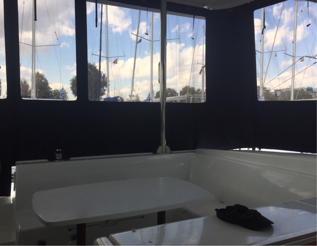 We had to make ourselves scarce “down below” while the canvas enclosure in the “cockpit” received its final fitting. Aeronautica, the company who we chose for the project did a fantastic job and we are thrilled with the result.