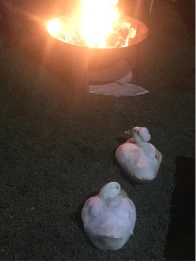 PS In case anyone is wondering how our grandducks are going here is a recent photo of them enjoying a camp fire in our son and daughter-in-law’s garden! Haven’t they grown?!