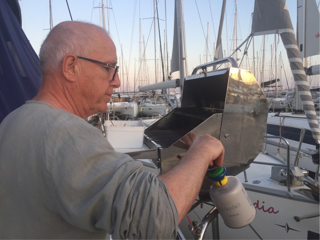 We were very lucky to hear of a secondhand Magma BBQ from Tim, skipper of Polykandros. He had made enquiries from the German seller but in the meantime had found a good one locally so he handed the details on to us.
