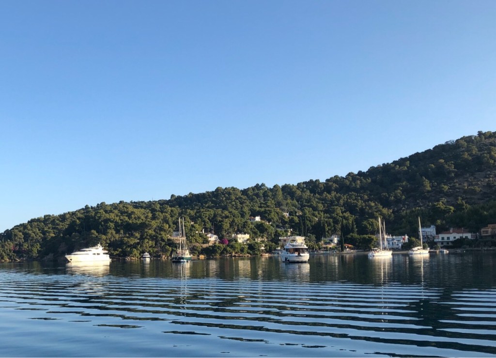 After almost three months stuck in Alimos Marina we have at last broken free and are now sitting at anchor off the island of Poros, just 30 nautical miles from Athens.