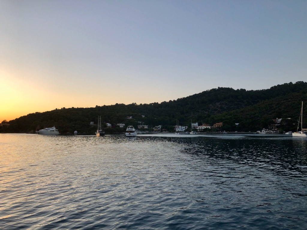 Late that evening he finally finished and we were good to go. Our good friends on Polykandros had asked us over for a farewell dinner and as we were running late I went ahead while Jonathan put tools away and cleared up a little.