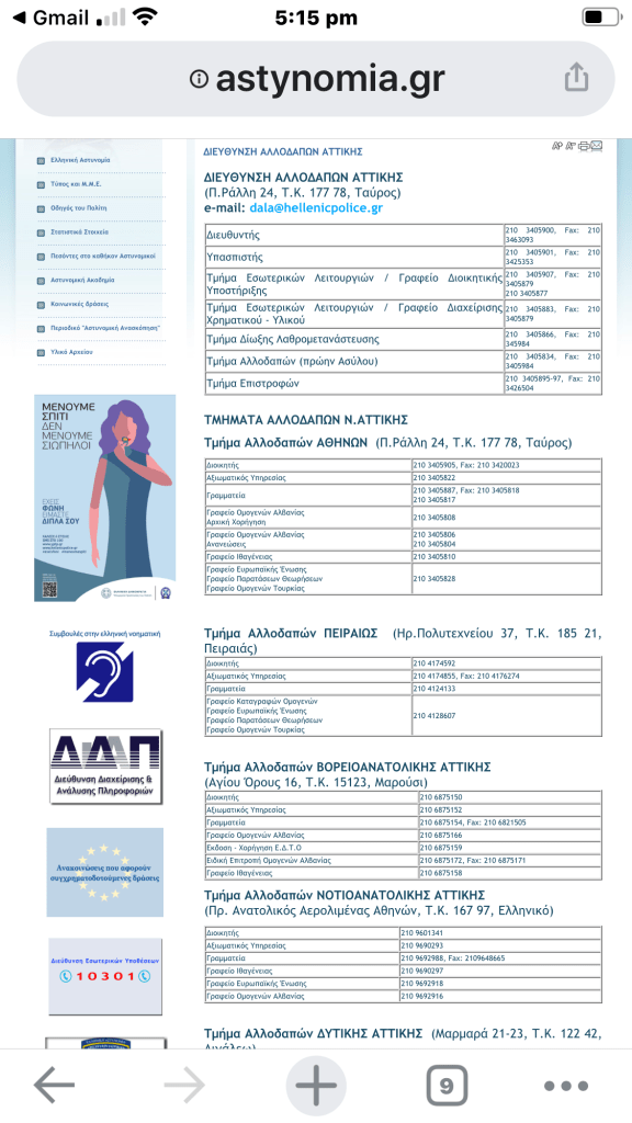 So I tried to find the correct email address on the website to send the inquiry to and after much searching, found what I thought was the correct address. However, the following morning I received a reply – “Please contact to this email….”. I sent the information to the email provided and the reply I received was “Please follow the link below”. The link had a list of contact details (all in Greek) but no indication as to which address we should use. Argggh!!